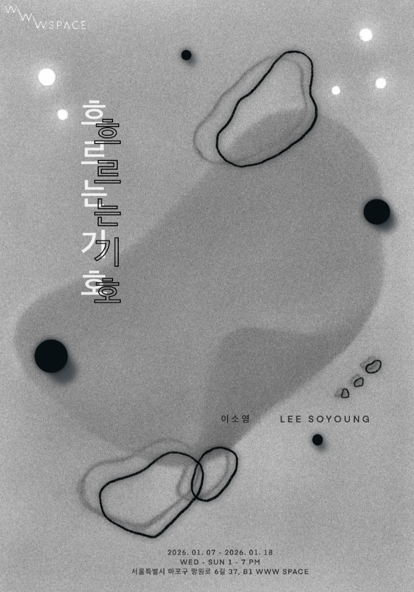 《흐르는 기호》바다를 건너 풀잎을 스치고 지나온 바람이 등을 밀며 흐른다.‘정답이 없는 수많은 것들 사이에서 정답인 양 행동해야 할 것 같은... 내가 바라보는 세상 안에서 나는 가끔 공기가 되어 바람을 타고 흘러다니고 싶다.'공기가 되어 바람을 타고 흘러가고 싶다는 간절함은 그를 정처 없이 떠돌게 했다. 이 과정에서 보는 것과 맡는 것, 듣는 것과 생각하는 것이 어느 한 곳에 머무르지 않고 얽히고설키며 흐르고, 형태를 갖기 전 사라지는 감각들은 기억의 잔상으로 남아 서서히 변형된다. 사건은 희미해지고 의미는 벗겨지며, 마침내 하나의 기호로 응축된다.흐르는 기호이소영26.01.07 - 26.01.18Wed-Sun 12:00 - 19:00(Mon-Tues Closed)LAST DAY 26.01.18 12:00-16:00WWW SPACE 1서울특별시 마포구 망원로 6길 37, B1B1, 37, Mangwon-ro 6-gil, Mapo-gu, Seoul