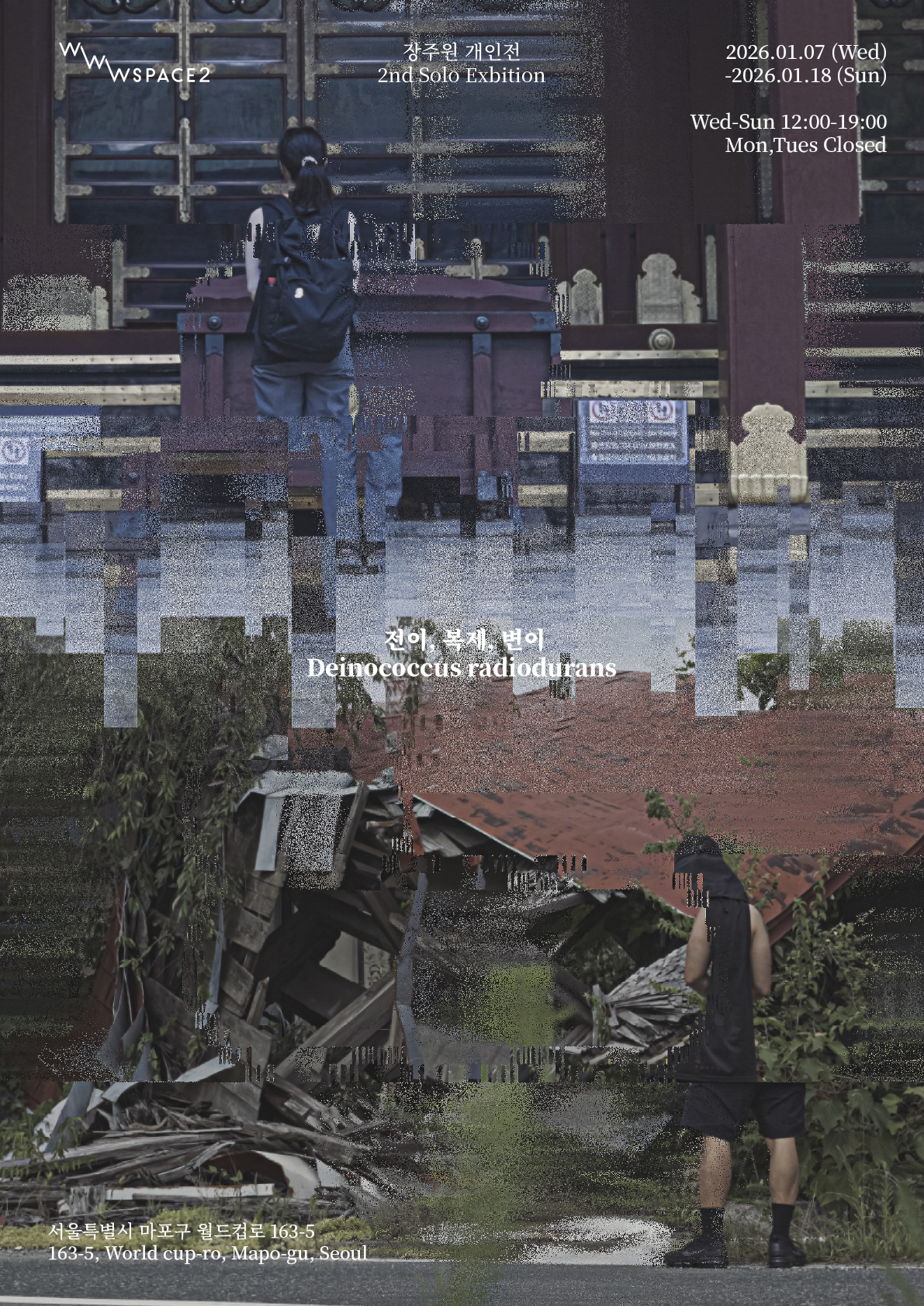 《전이, 복제, 변이》-Deinococcus radiodurans-보이지 않는 것은 종종 우리의 인식을 흔든다. <전이, 복제, 변이>는 작가가 직접 도쿄와 후타바에서 마주한 장면들과 전부터 작업의 핵심이 되어온 바이러스가 서로 접촉하는 지점을 본다. 작가는 서로 결합하지 않는 물질로 철과 알루미늄이 만나는 순간을 다루며, 서로 닿으면서도 붙지 않는 성질이 만 들어내는 간극을 주목했다. 철 위에 흩뿌려진 알루미늄은 하나로 합쳐지지 않지만, 결합하지 않는 자 리에서 독특한 표면과 구조가 발생한다. 전시의 핵심 개념인 '전이', 복제', '변이'는 보이지 않는 감각 들이 다른 형태로 이동하고, 물질과 표면으로 변환되는 과정에서 불규칙성이 비롯되는 과정을 재난 이후의 단절이나 끝이 아닌 지속과 변형의 상태로 바라본다....장주원전이, 복제, 변이26.01.07 - 26.01.18Wed-Sun 12:00-19:00Mon,Tues Closed26.01.18 LAST DAY 12:00-16:00WWW SPACE 2 @wwwspace21F, 163-5, World Cup-ro, Mapo-gu, Seoul:: wwwspace.kr2@gmail.comhttp://www.instagram.com/wwwspace2