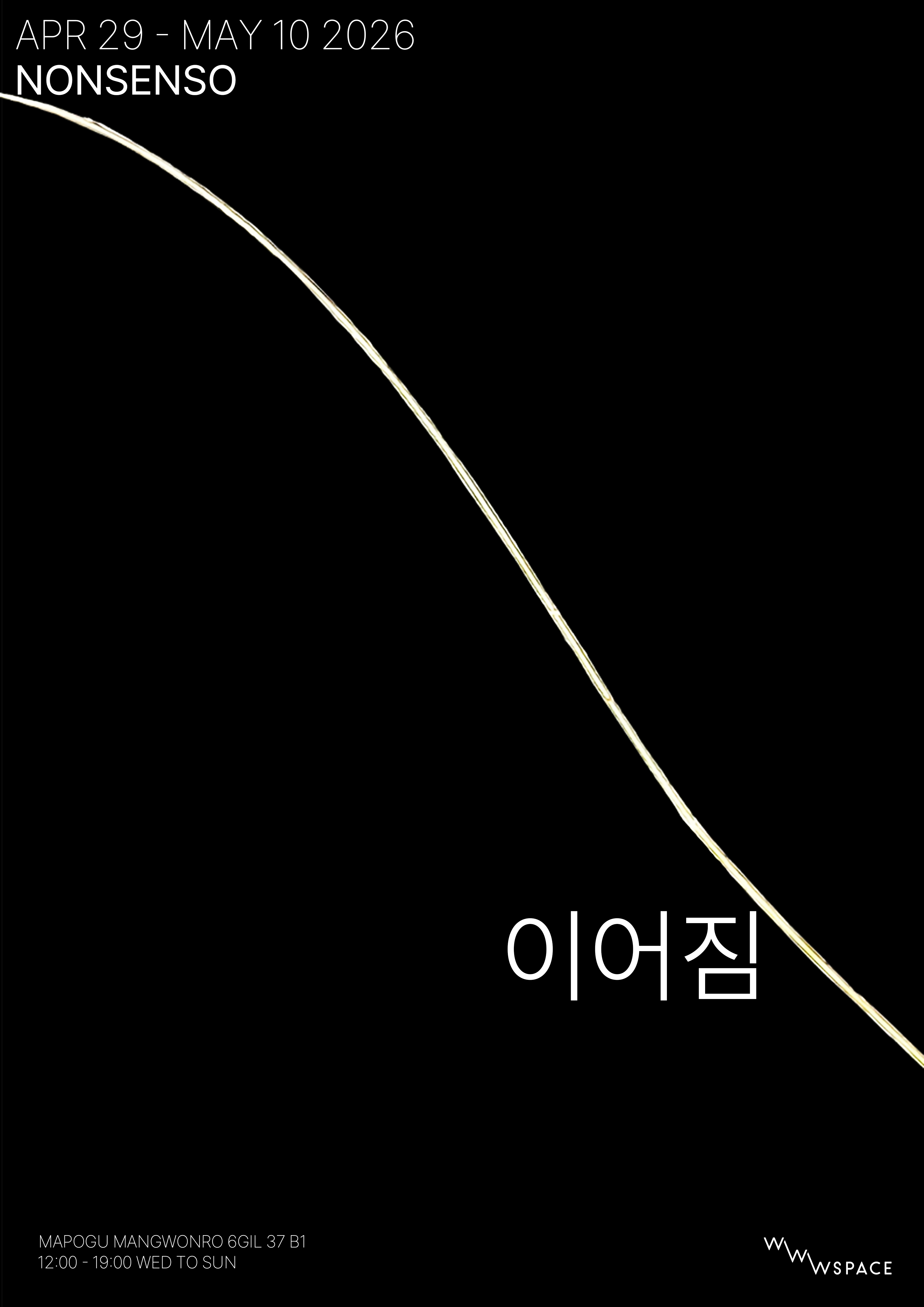 《이어짐》전시 '이어짐'은 멈추지 않고 이어진 작업의 한 시점이다.완성을 향해 닫히기보다, 붙이고 떼고, 쌓고 흘리는 과정 속에서형태가 만들어진다.이번 전시에서는 종이를 중심으로 한 작업을 이어가며,작은 종이 점을 반복적으로 쌓아가는 새로운 시리즈를 함께 놓는다.점들은 화면 위에 밀도를 만들고 서로 다른 속도와 리듬을 남긴다.형태는 멈추거나 기울고, 다시 흐르며 같은 모습으로 되돌아가지 않는다.여기에 놓인 장면들은 과정의 단면이다. 이 전시는 흐르는 시간을잠시 드러내는 자리이며, 작업은 계속 이어진다.NONSENSO이어짐26.04.29- 26.05.10Wed-Sun 12:00-19:00Mon,Tues Closed26.05.10 LAST DAY 12:00-16:00WWW SPACE 1 @www__spaceB1, 37, Mangwon-ro 6-gil, Mapo-gu, Seoul:: wwwspace.kr@gmail.comhttp://www.instagram.com/www__space